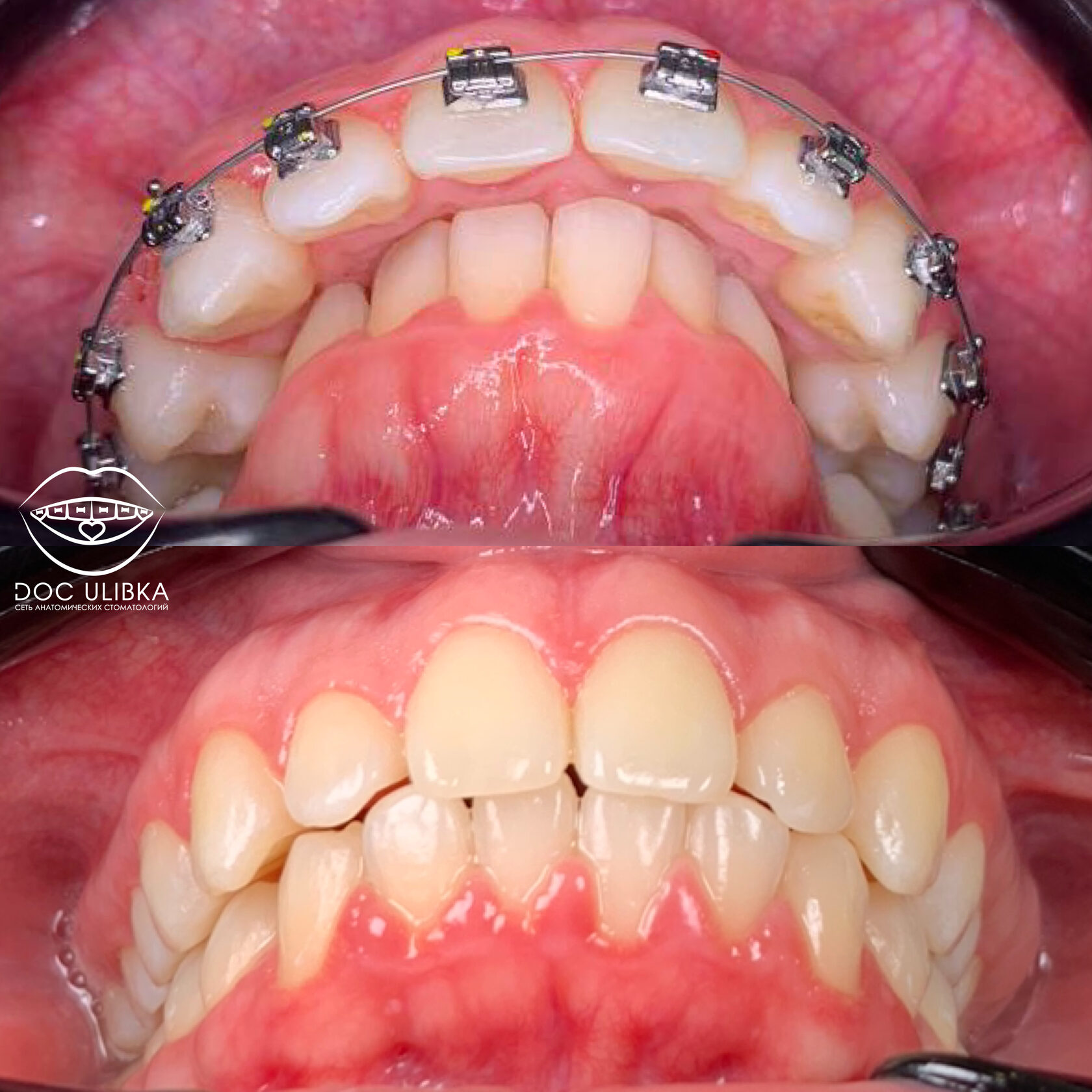 Устранили протрузию резцов верхней челюсти.
